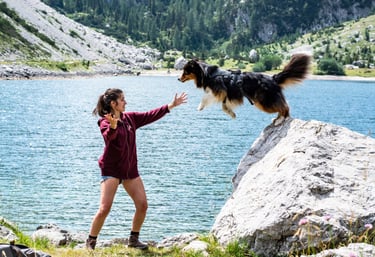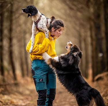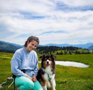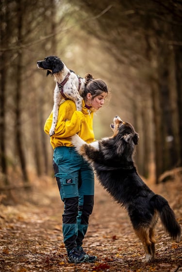 Mathilde, passionnée de sports canins et formée en comportement canin, je souhaite pouvoir vous proposer une activité qui vous ressemble et qui vous plaît. Le monde de l'apprentissage est vaste, quelque soit votre personnalité ou celle de votre chien, nous allons trouver ensemble l'activité qui VOUS correspond !